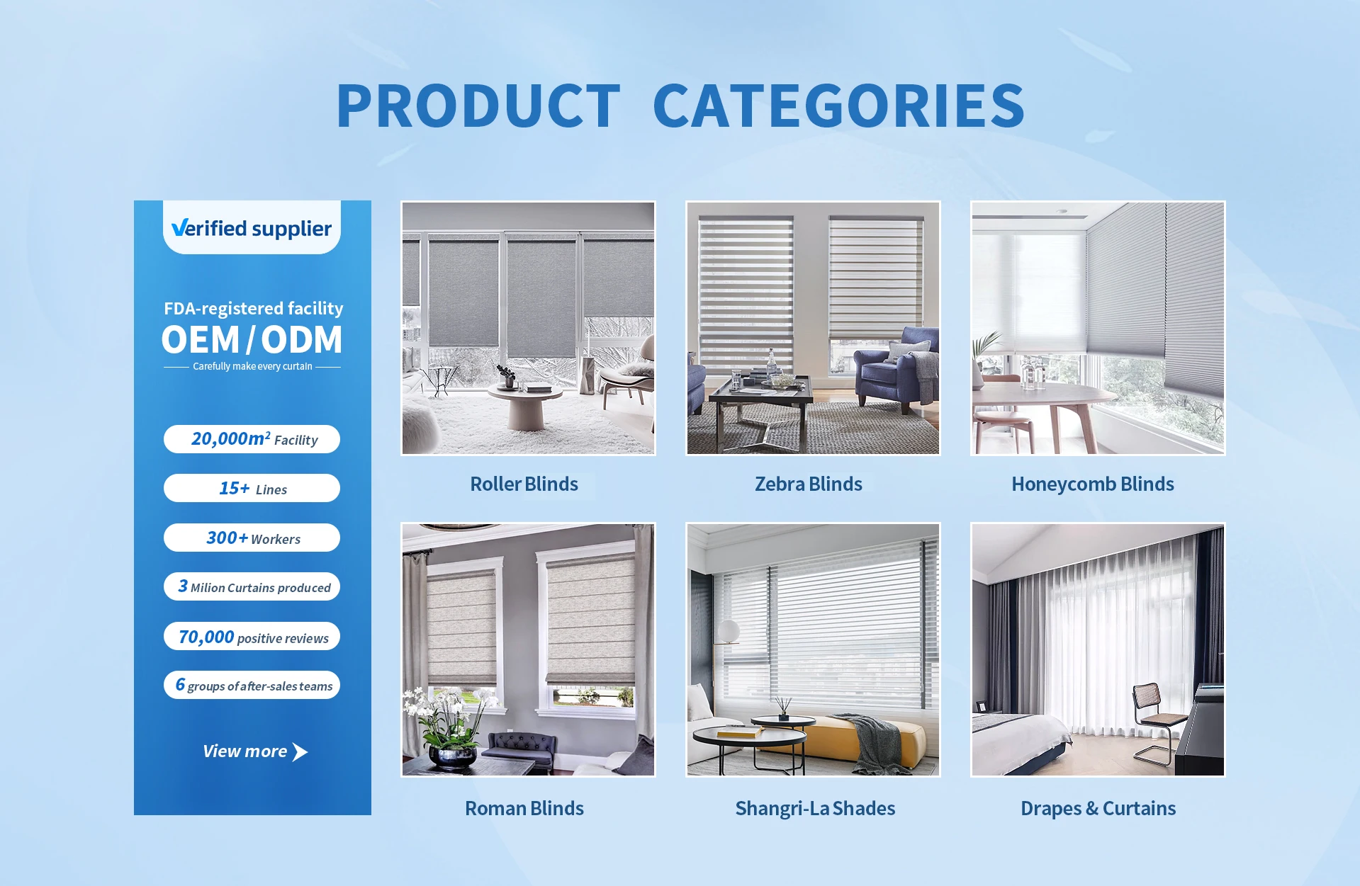 ผลิตภัณฑ์หลัก:ผ้าม่านโรงแรม, ผ้าม่านมอเตอร์, ผ้าม่านม้วน, ผ้าม่าน Shangri-La, ผ้าม่านม้าลาย